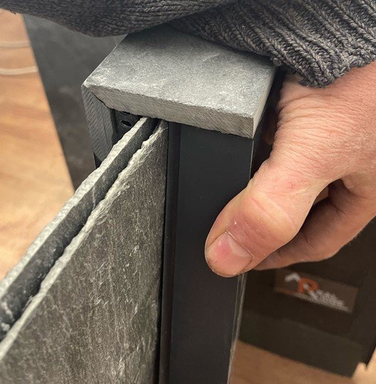 The seamless look was achieved by hand-cutting a challenging double mitre in the natural slate, so that no edges were visible. Our use of natural slate creates a beautifully high-end yet traditional finish to a slate roof. Our modern dry-fix connector means easy fixing, and the hidden vent allows for free-air ventilation of the roof-space.